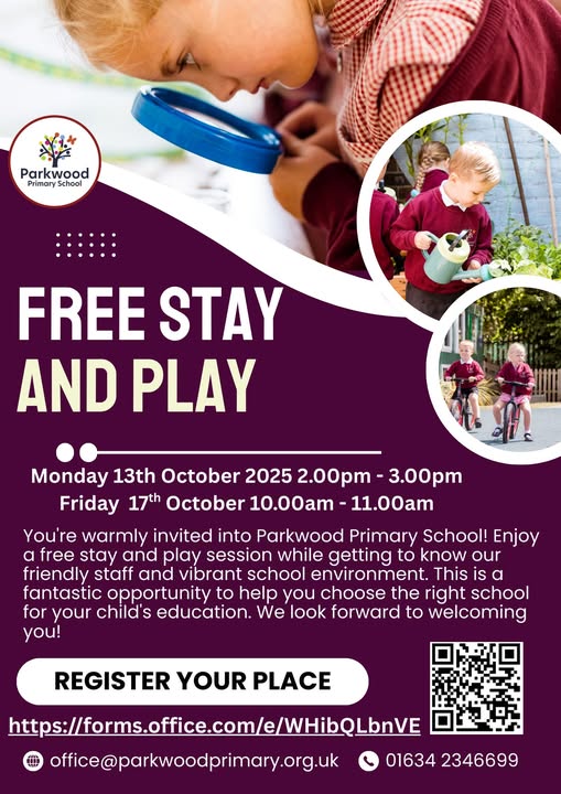 Thank you for considering Parkwood Primary School as a school for your child starting in September 2026. We feel this would be a brilliant choice and we are delighted to be able to share further information with you on this page.